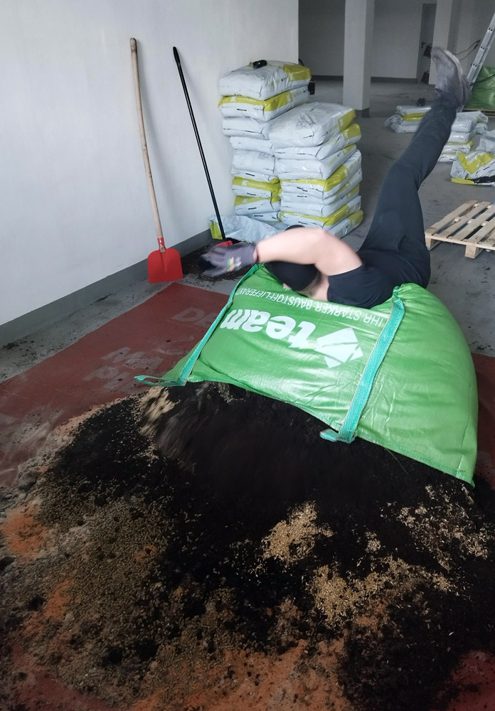 Seit letzter Woche hat sich in unserer Halle einiges getan. Und dabei hat sich eines grundlegend verändert; der Geruch. Es riecht nach Wald, nach Erde, nach Bauernhof. Und das ist nach dem monatelangen Baustellengeruch eine mehr als willkommene Abwechslung.